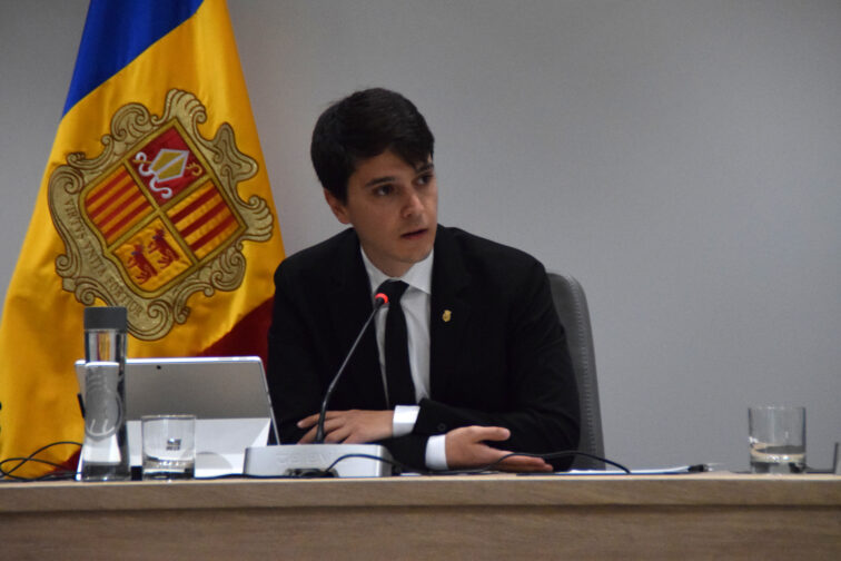 El conseller de Transformació Digital i Sostenibilitat, i d’Habitatge, Marc Torrent, durant la sessió del consell de comú.