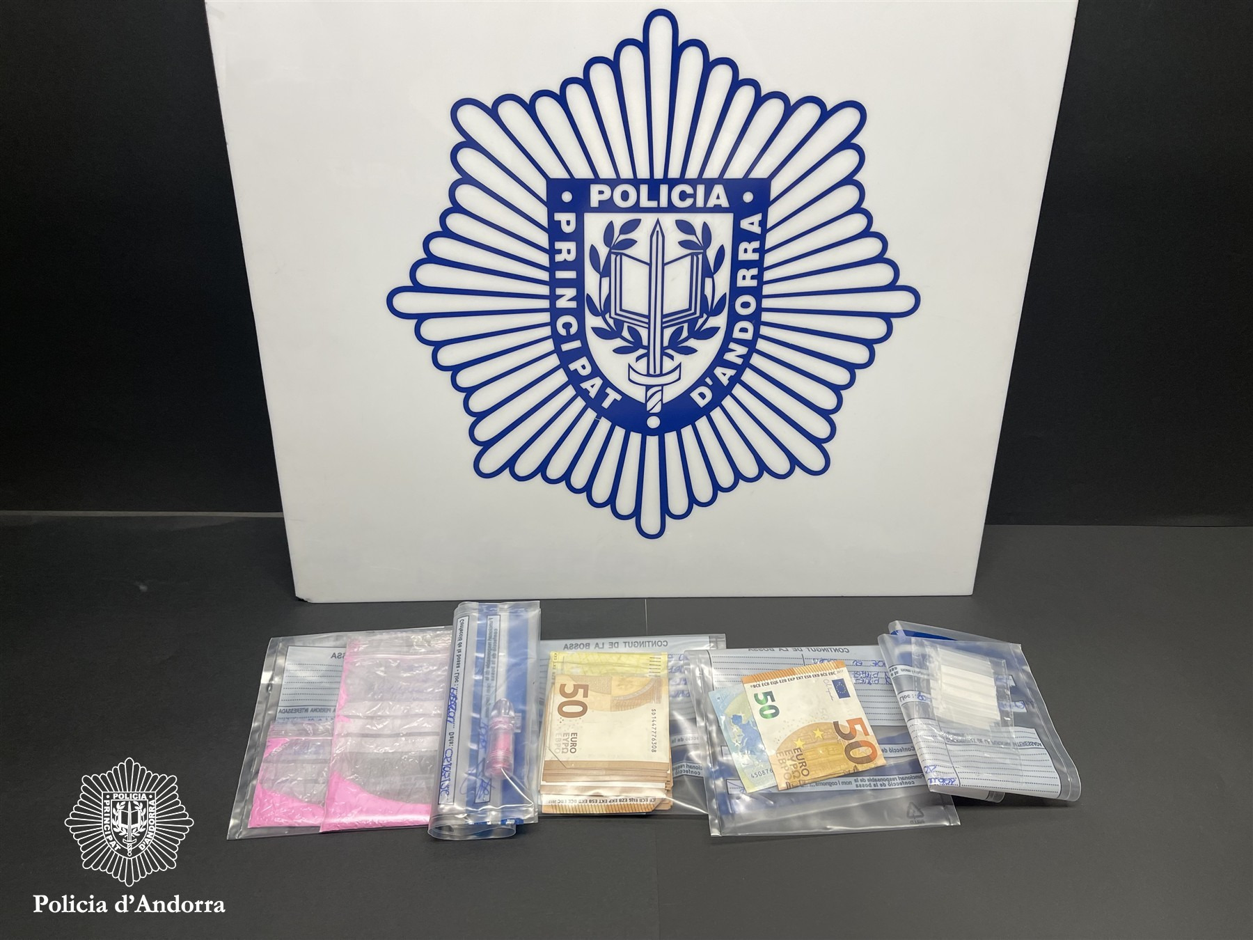 Durant l’actuació també s’ha detingut una de les dones, de 32 anys i no resident, després de trobar-li 14 grams de tusi repartits en dues bosses i un dosificador. La substància s’ha localitzat amb la col·laboració d’un binomi del Grup de Guies Canins especialitzat en la detecció de drogues. A més, la detinguda tenia embolcalls de plàstic destinats a preparar les dosis i prop de 1.400 euros en efectiu, que també han estat comissats.
